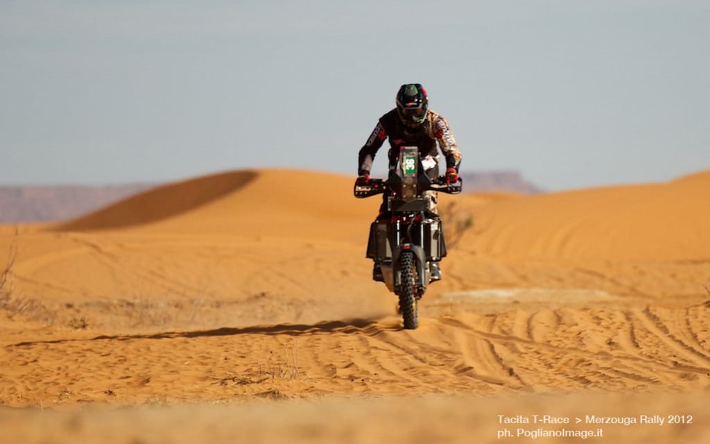 Les Italiens de Tacita ont choisi de concevoir une moto électrique pour affronter ces conditions et se lancer à l’assaut du Rallye de Merzouga pour valider leur design. Le nom Tacita vient de la déesse romaine du silence. Un projet ambitieux, le défi est de taille. Autour d’un moteur refroidi au liquide de leur propre conception, ils ont dessiné un cadre copiant la géométrie standard en hors route avec des suspensions Marzocchi de top niveau, un bras oscillant à biellettes et des roues de 21 et 18 pouces, le but étant d’avoir une moto au comportement normal. Autres aspects intéressants : l’utilisation d’une transmission à 6 rapports et d’un embrayage moto régulier pour avoir le couple optimal à la roue arrière en tout temps et la disposition des accumulateurs de 10,6 KW de technologie Li-po (lithium-ion polymère), deux dans le cadre à l’avant et deux à l’arrière, disposés comme des valises, pour équilibrer les masses. Les circuits de contrôle et les variateurs sont aussi refroidis au liquide. Trois modes de puissance sont disponibles : Eco pour maximiser l’autonomie, Race et un mode Boost pour une pointe de puissance de 60 secondes. Le poids se situe au-dessus de 175 kilos.