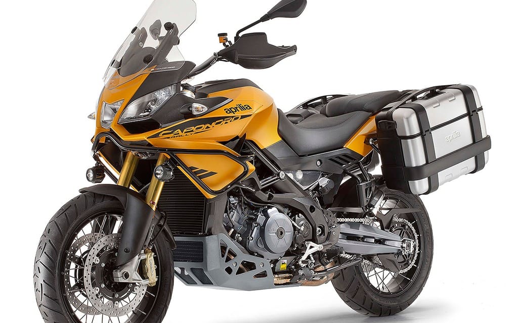 En 2014, la version Travel Pack, orientée vers le tourisme sur bitume, prenait nos routes d’assaut. Pour 2015, la firme de Noale nous dévoile sa version extrême, la Rally. Les principales différences : jantes à rayons (19 pouces à l’avant), protecteur de carénage et de carter, pare-brise plus massif, valises avec couvercles en aluminium, réservoir de 24 litres et phares d’appoint à LED. Les suspensions ADD (Aprilia Dynamic Damping) sont aussi au rendez-vous. Reste à voir si elle sera disponible au Canada.