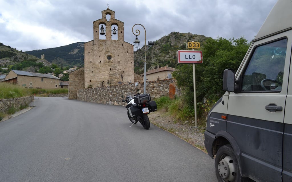 Le lundi après le Grand Prix, nous prenons la route. Nous avons parcouru quelques petites routes de montagne près de la ville lors de nos visites des premiers jours, mais les Pyrénées toutes proches sont invitantes. Montjuic, la Sagrada Familia, les maisons de Gaudi et le mirador de Colom, c’est très beau, mais les montagnes m’appellent. Et ce matin, ces montagnes sont prises d’assaut par des centaines de Français qui retournent chez eux. Quelques motos ici et là, puis de plus en plus de motos, toutes en direction nord. Nous roulons sur la C-17 lorsque je me joins à un petit groupe qui file à un bon rythme. À l’entrée d’un tunnel où la vitesse est limitée à 80 km/h, le groupe ralentit… et moi aussi. La vitesse du flot de circulation est d’environ 110 à 120 km/h et les véhicules que nous venons de dépasser avant de ralentir nous doublent dans le tunnel… pour se faire arrêter par un important déploiement de la fuerza policiaca à la sortie! Il y a des dizaines de motards et plusieurs automobilistes immobilisés pour se voir remettre un billet! Je suis bien content d’avoir de nouveaux copains qui ont de l’expérience, expérience qui transparaît d’ailleurs dans leur pilotage! La voie rapide se transforme ensuite en superbe petite route de montagne, la C-17 devient la N-260. Petit détour pour casser la croûte à La Molina, village juché à 2000 mètres, populaire auprès des skieurs. Très beau, même si c’est un peu frais au goût de Brigitte, passer de 30oC à moins de 15oC en quelques heures… « La frontière est tout près. La température va remonter dès que l’on descendra un peu. »