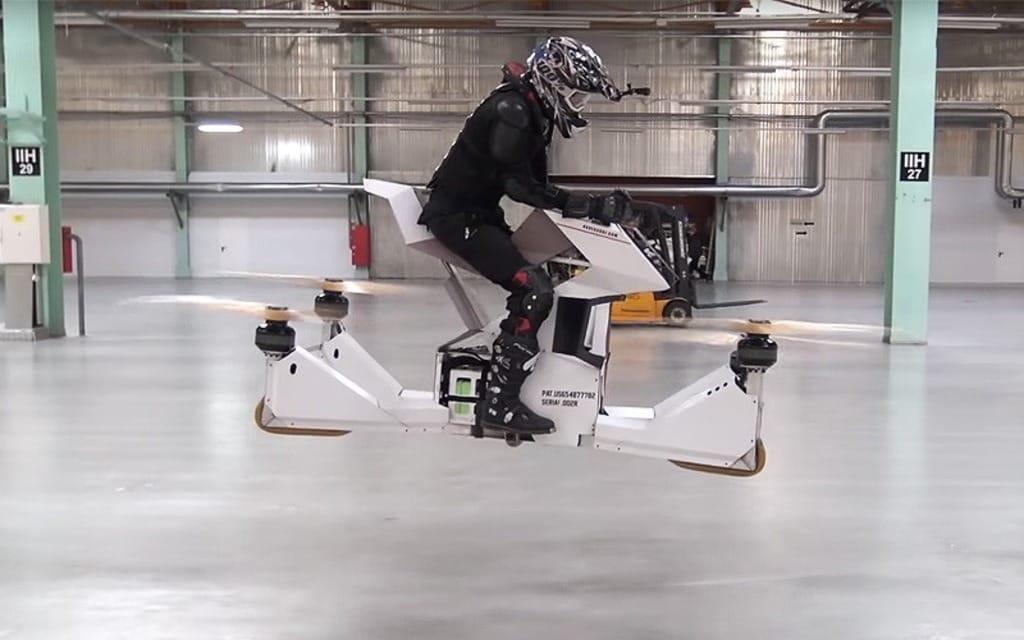 Avec le Scorpion-3, la société russe Hoversurf, spécialisée dans la production de drones, entre sur le marché de la moto volante. L’entreprise propose un engin volant qui combine des éléments d’un drone, d’un hélicoptère et bien sûr, de la moto, ce qui n’est pas des plus rassurant. Avec ses quatre hélices en rotation à quelques pouces des jambes du pilote – et, pire, au niveau de la tête des passants –, le Scorpion-3 semble à peu près aussi sûr qu’une tondeuse en lévitation. Pour nous rassurer, Hoversurf prétend que la vitesse et l’altitude seraient gérées automatiquement. Il est capable de soulever une charge de 120 kilos et d’atteindre la vitesse de 50 km/h. Il a une autonomie de 27 minutes et peut voler jusqu’à 10 mètres du sol. Aucun prix, aucune spécification technique ni aucune date de commercialisation n’ont été rendus publics. Nous ne sommes pas vraiment pressés d’en faire l’essai…