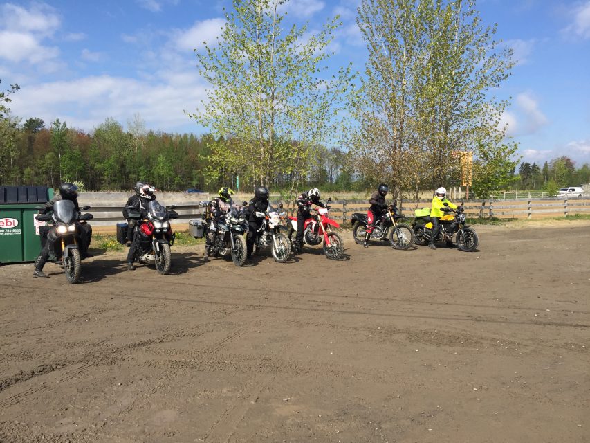 La fin de semaine suivante, le dimanche 26 mai, Guy nous donne rendez-vous chez SRA Motocross à Saint-Rock-de-l’Achigan. Quand je quitte la maison, le ciel est nuageux et la route mouillée par de récentes averses. Pourtant, selon les prévisions météo, il fera beau! Je me croise les doigts et reste bien au sec jusqu’au point de rencontre. Sur place, on se présente et je constate que notre groupe est composé de huit motocyclistes : quatre femmes et quatre hommes. Fantastique!