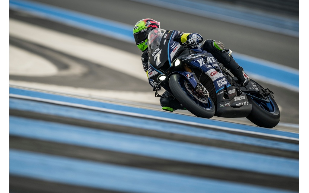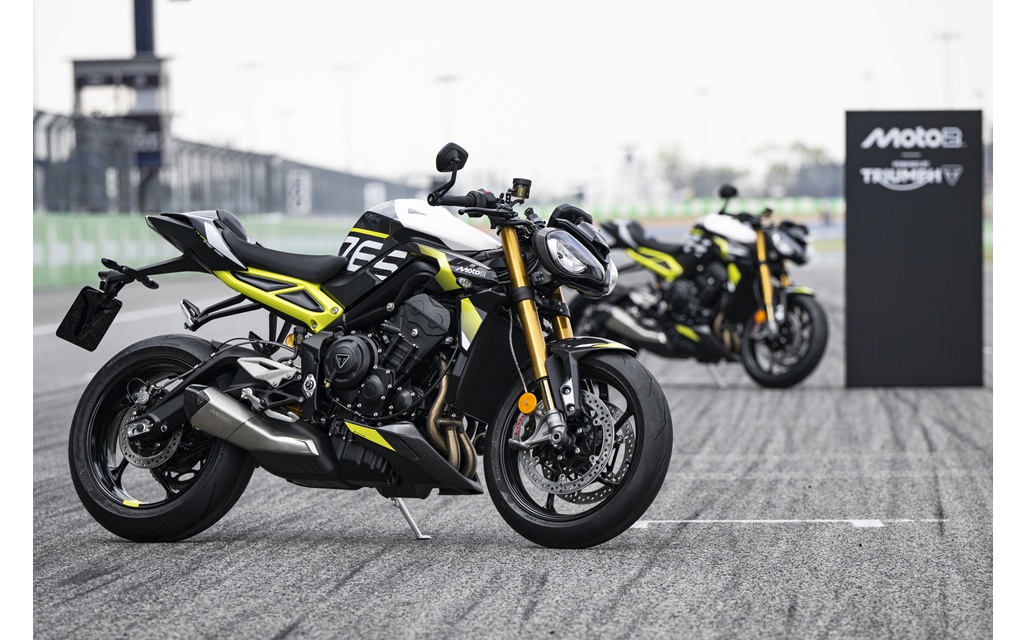 L’empattement passe de 1 440 à 1 450 mm, grâce à un bras oscillant allongé de 8 mm pour plus de stabilité à haute vitesse et un décalage de la fourche accru de 2 mm, au profit d’un appel de virage plus décisif.