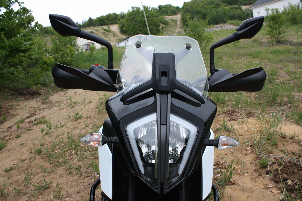On est plus confortable en position assise que debout, où son gabarit devient plus contraignant pour le pilote expérimenté. Mais sur la route elle est hyper confortable, malgré que la protection contre le vent soit limitée. Son pare-brise offre deux positions mais demeure plutôt court. Le moteur est vif et plaisant à conduire, la direction est bonne et les suspensions ajustables sauront répondre tout au moins à vos premiers balbutiements sur surface de terre, de gravier ou d’asphalte.
