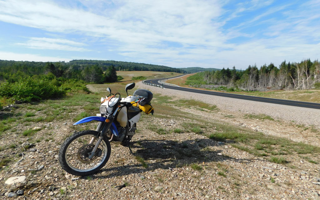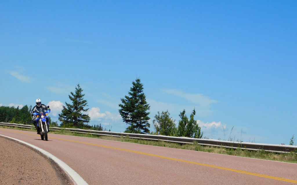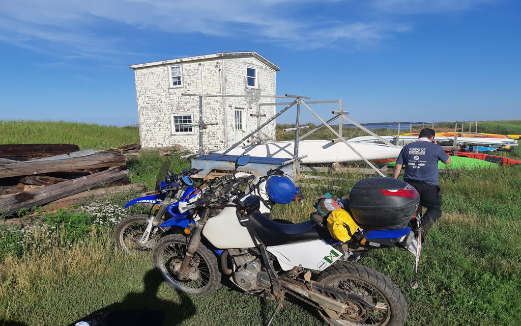 On entend souvent dire que la pratique du motocyclisme est idéale pour maintenir une distanciation sociale, mais nous avions tout de même l’impression d’être dans la foule le jour suivant. Nous étions en plein trafic en longeant le détroit de Northumberland via Grand-Digue, Shediac et Beaubassin-Est. Glen n’appréciait pas trop. C’est lui qui roulait devant au guidon de la Yamaha WR250R que je lui avais prêtée (sa BMW était immobilisée pour cause de problème de freins). Quand il en a eu marre de rouler sur une 250 entre des maisons mobiles et des camions, il a jeté un coup d’œil rapide sur Google Maps et trouvé une petite route secondaire qui menait jusqu’en Nouvelle-Écosse.