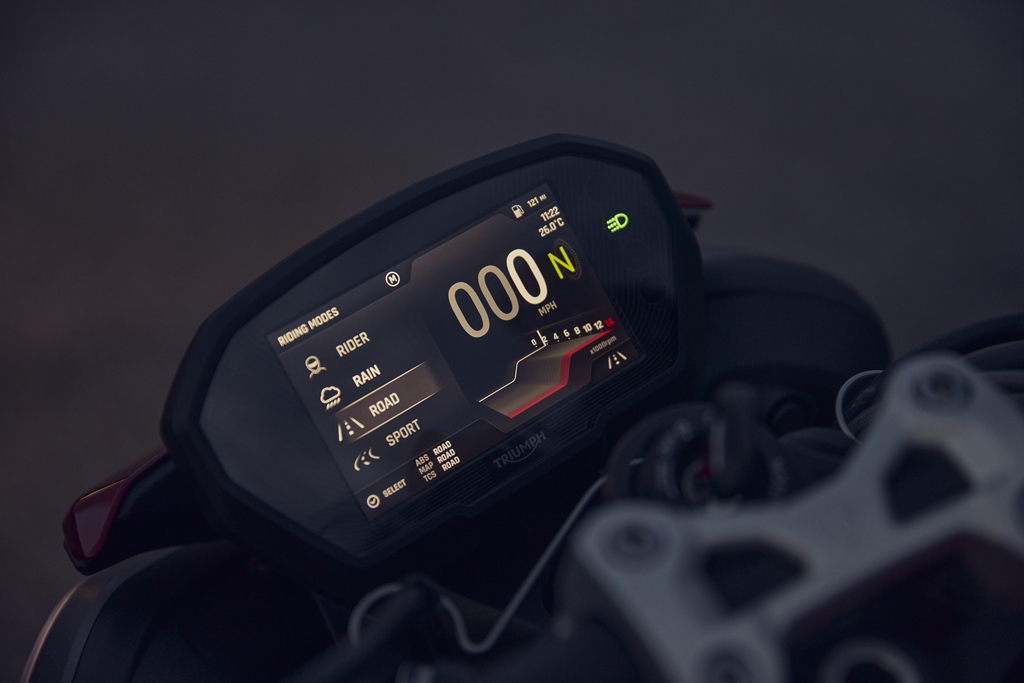 - Le sélecteur rapide Triumph Shift Assist « up-and-down » adapté à la piste est monté de série sur les trois modèles.