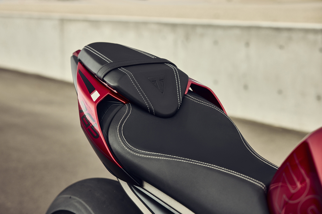 Avec une hauteur de selle accessible de 826 mm sur la Street Triple R, 836 mm sur la Street Triple RS et 839 mm sur l’édition Moto2™, une nouvelle option de selle basse, avec technologie de filet 3D pour un meilleur confort, peut être installée pour réduire la hauteur de 28 mm supplémentaires sur tous les modèles. Pour la Street Triple RS et l’édition Moto2™, les concessionnaires Triumph peuvent abaisser la hauteur de 10 mm supplémentaires si nécessaire grâce à l’adaptation de la tringlerie de la suspension arrière, qui, lorsqu’elle est livrée en combinaison avec la selle basse accessoire, propose une hauteur très accessible de 798 mm sur la RS et de 801 mm sur l’édition Moto2™.