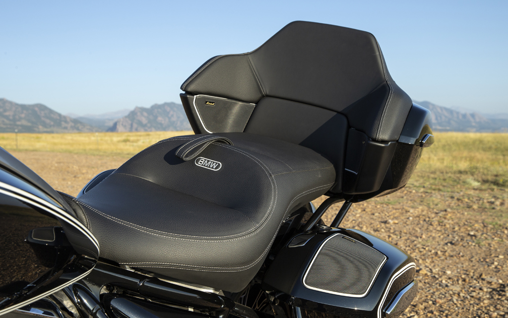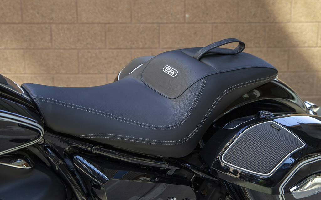 On attend évidemment de montures comme les R18B et R18 Transcontinental un grand niveau de confort sur long trajet. Or, elles sont basées sur la R18 custom dont l’ergonomie a largement été critiquée en raison de la courte distance qui sépare la selle très basse et les repose-pieds dont la position centrale est dictée par les gros cylindres. Heureusement, cette critique ne s’applique pas aux R18B/T. Bien que leurs repose-pieds soient fixés au même endroit, les selles nettement plus hautes ouvrent l’angle des jambes et éliminent la sensation d’être coincé communément ressentie sur la R18. De plus, comme la raison pour laquelle les selles des R18/T sont plus hautes est une augmentation considérable du rembourrage, leur niveau de confort s’en trouve agréablement accru. Parce qu’elle est plus épaisse et plus haute que celle de la R18B, la selle de la R18 Transcontinental est décidément le meilleur choix lorsqu’il est question d’accumuler des kilomètres en grande quantité, d’autant plus qu’elle améliore la position de conduite en la rendant encore plus dégagée. Les avantages de la Transcontinental en voyage ne s’arrêtent pas là, puisqu’elle est équipée d’un pare-brise plus haut offrant une meilleure protection contre les éléments. On peut néanmoins reprocher à ce dernier d’arriver juste dans le champ de vision de la majorité des pilotes. On s’y fait, mais dans le cas contraire, une solution simple pourrait être d’installer le pare-brise plus court, mais quand même efficace de la R18B, puisqu’ils sont interchangeables. Notons que la selle plus haute et plus confortable de la Transcontinental ainsi que son pare-brise haut peuvent tout aussi bien être installés sur la R18B, ce qui permet de faire de cette dernière une bagger plus apte aux longues distances.