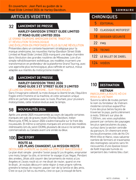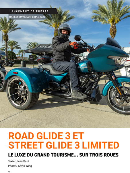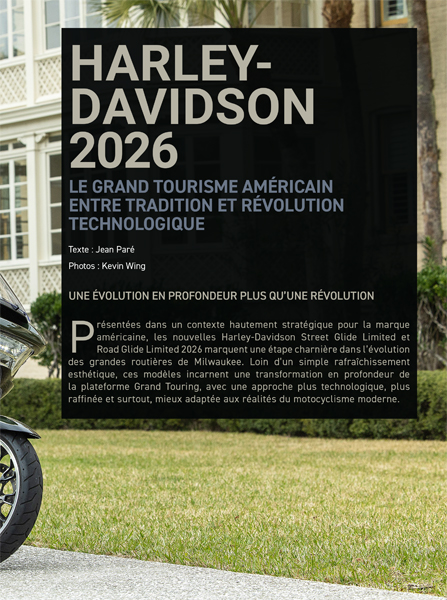 Sur la couverture : Jean Paré au guidon de la Road Glide Limited 2026 de Harley-Davidson.