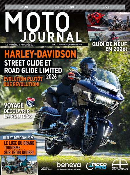 Jean Paré vous présente le Street Glide et le Road Glide Limited 2026 de Harley-Davidson ainsi que les trois roues Trike. Didier Constant vous a préparé un dossier sur les nouveautés 2026 des manufacturiers et découvrez la Route 66 grâce à Zac Kurylyk.